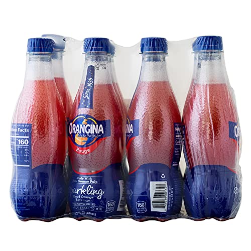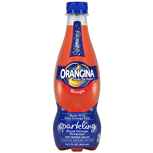 Orangina - French Sparkling Blood Orange Juice Beverage (Rouge) - Light Pulp - Original Imported European French Recipe - (Rouge) (Pack of 12) (14.2 oz Bottle)