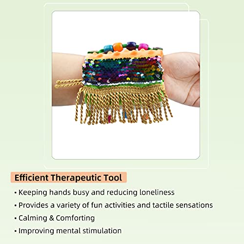 - EXTRA ACCESSORIES: Fidget wrist cuff includes ribbons, buttons, colorful sequin,beads,fluffy bath mat and so on, keeping restless hands busy.