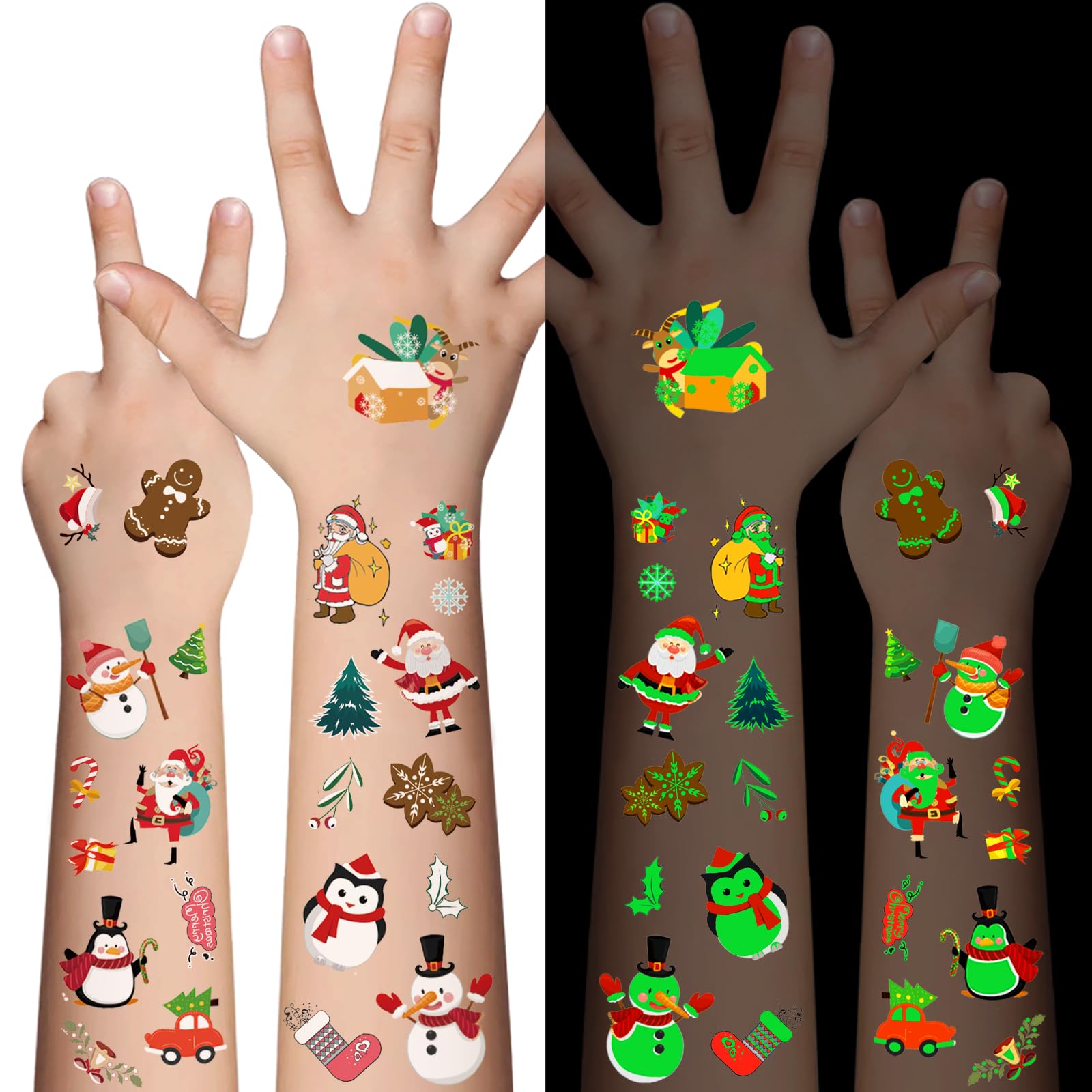 Luminous Christmas Temporary Tattoos for Kids - 120 Pieces Christmas Glow in The Dark Tattoos Stickers for Boys and Girls,Christmas Party Favors for Kids Stocking Stuffers and Gifts 10 Sheets
