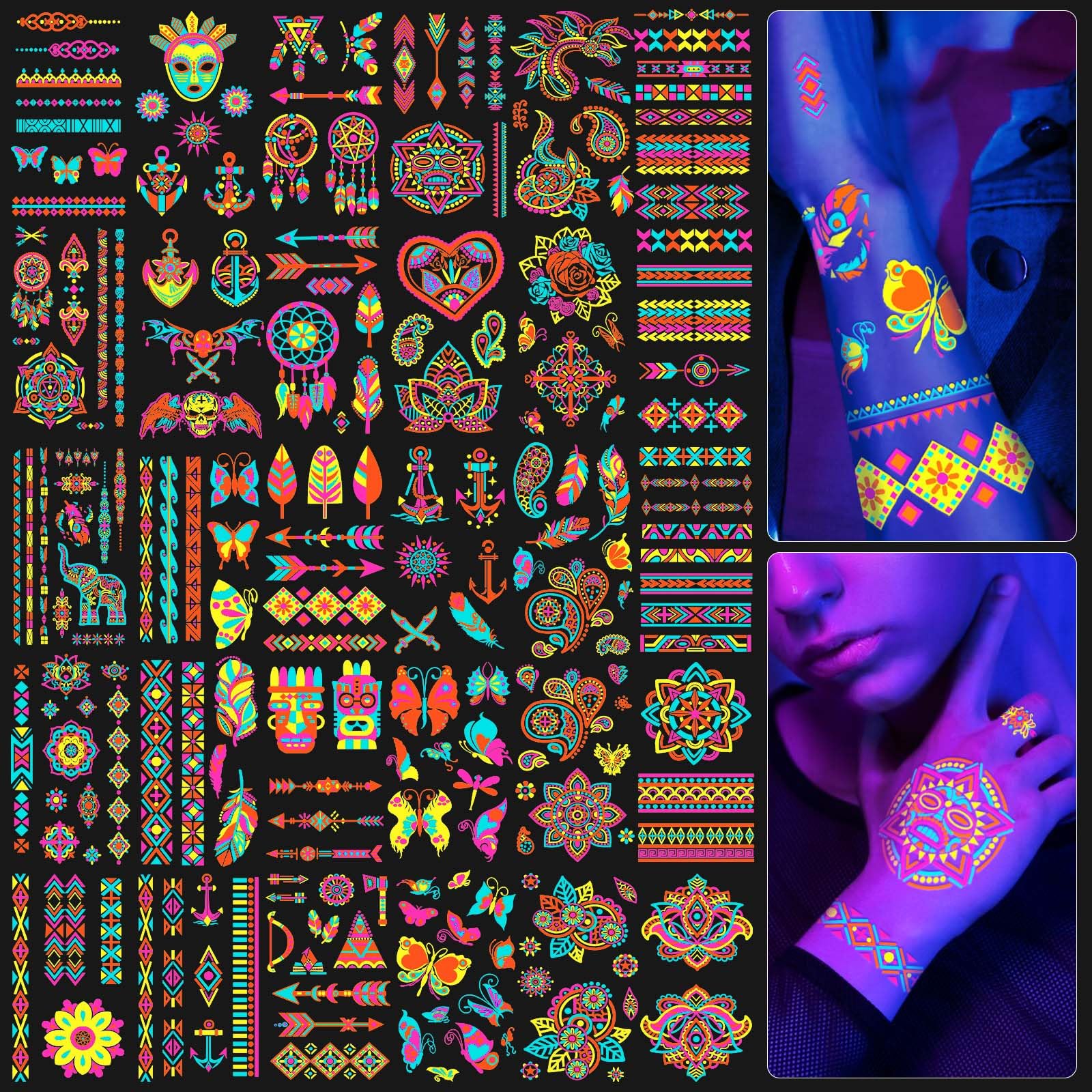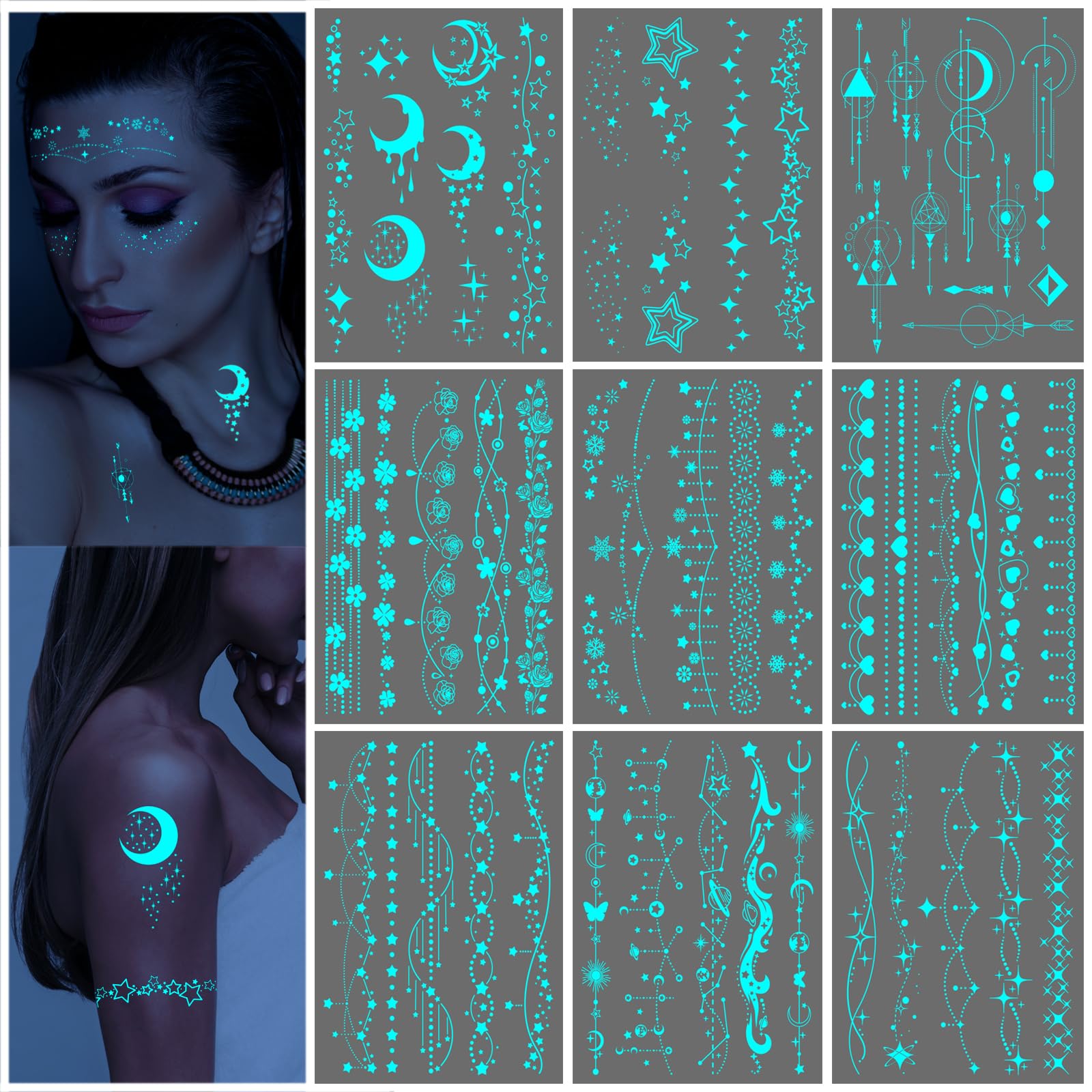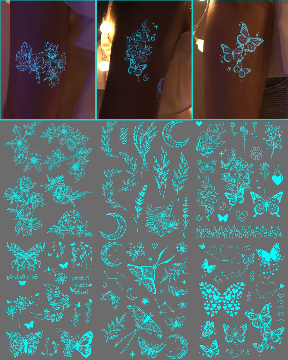 - Glow in the dark. After absorbing sunlight during the day, this tattoo will glow in the dark. The luminous time will be affected by light and temperature. If the luminous effect becomes weak or even no luminescence, just absorb the sunlight again and it will shine again.