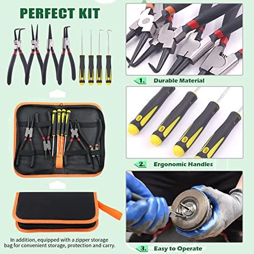 - 【Durable Material】The Snap Rings Pliers are made of forged and hardened 55# carbon steel, high temperature treatment, not easy to rust and enhances its durability. These professional picks are designed with CR-V steel shafts chrome plated for resistance to rust and corrosion, strong construction, integrated injection molding handle prevent the cutter bar from moving or falling off, provide long service time.