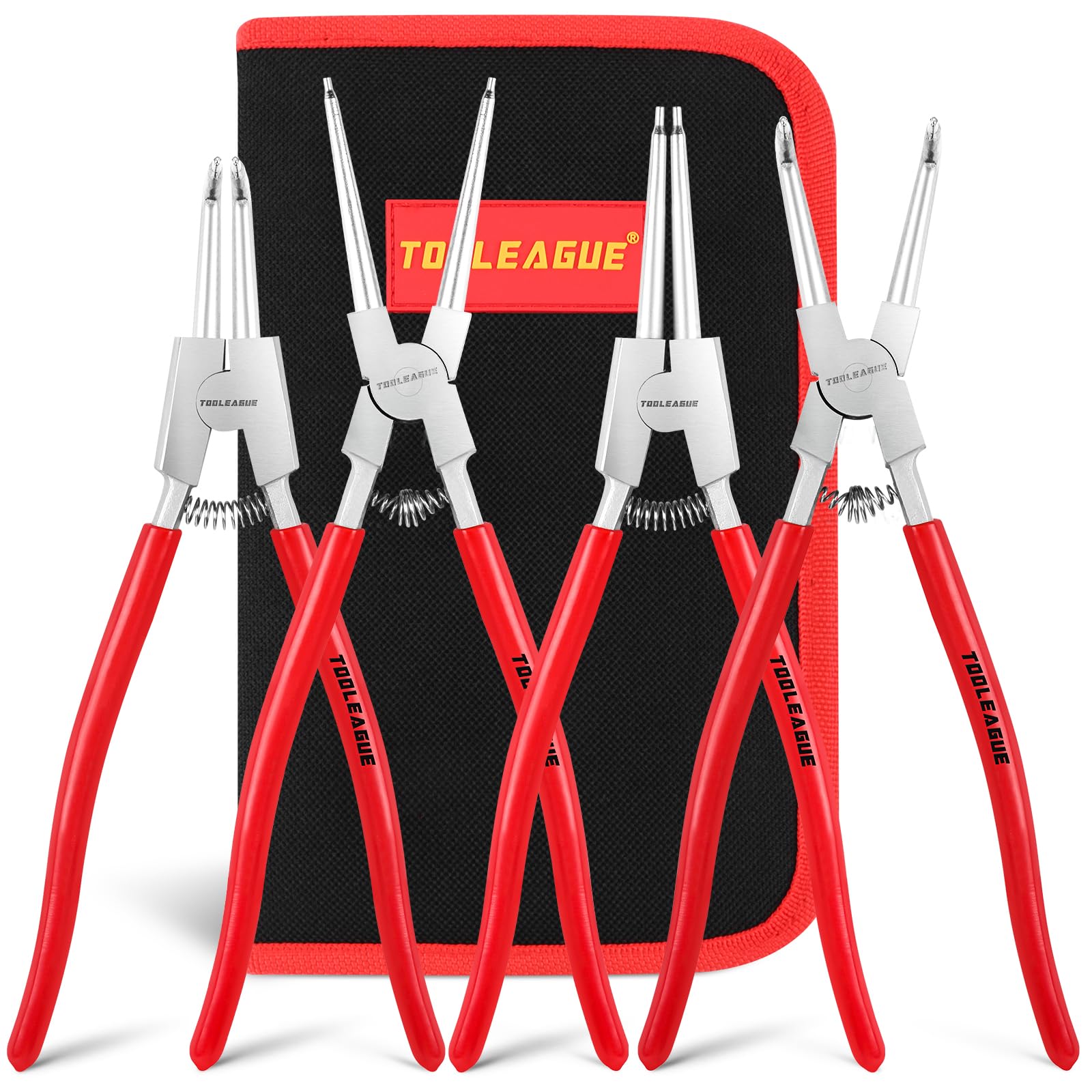 - 【High Value Tool Kit】The 7 inch snap ring pliers kit contains Straight Internal Snap Ring Pliers + 90-degree Angled Internal Snap Ring Pliers+ Straight External Snap Ring Pliers+90-degree Angled External Snap Ring Pliers + 4 pcs mini precision hook, totally 8 pcs. In addition, equipped with a zipper storage bag for convenient storage, protection and carry.