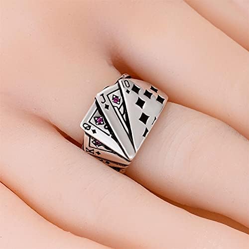 coadipress Poker Cards Ring Vintage Diamond Spade Flush Playing Cards Band Adjustable Stainless Steel Hip Hop Punk Poker Games Casino Gambling Bikers Open Rings Jewelry for Women Men