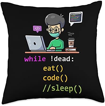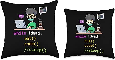 While Dead Eat Code Sleep Funny Coding Software Programmer Throw Pillow