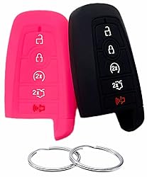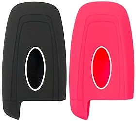 REPROTECTING Silicone Rubber Key Fob Cover Compatible with 2017-2025 Ford Edge Expedition Explorer F-150 F-250 F-250 F-350 F-450 F-550 Super Duty Duty Fusion Mustang Bronco Bronco Sport (Black/Rose)