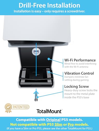 - EXPERIENCIA DE JUGADA DE NIVEL PROFESIONAL – Además de presentar un diseño premium de una marca de confianza, este soporte de pared incluye una carcasa libre de metal para evitar interferencias con la antena Wi-Fi de la PS5, amortiguadores para minimizar el ruido del ventilador durante el juego y un tornillo resistente que asegura el montaje a la base de la PS5.