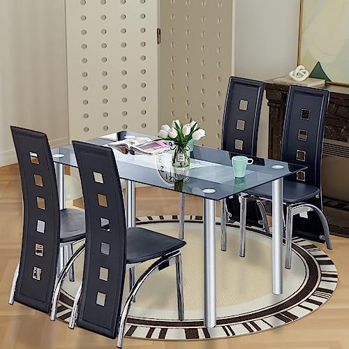 HomVent Dining Table Set for 4, Small Tempered Glass Dining Room, Kitchen Table and Chairs for Small Spaces, Transparent,White Modern 110cm, Stainless Steel PU Leather (Transparent & Black)