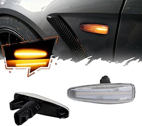 Clear Lens Sequential Amber LED Front Side Marker Lights Compatible For 2008-2013 Mitsubishi Lancer Evo x Mirage OutlanderSport,Pack of 2