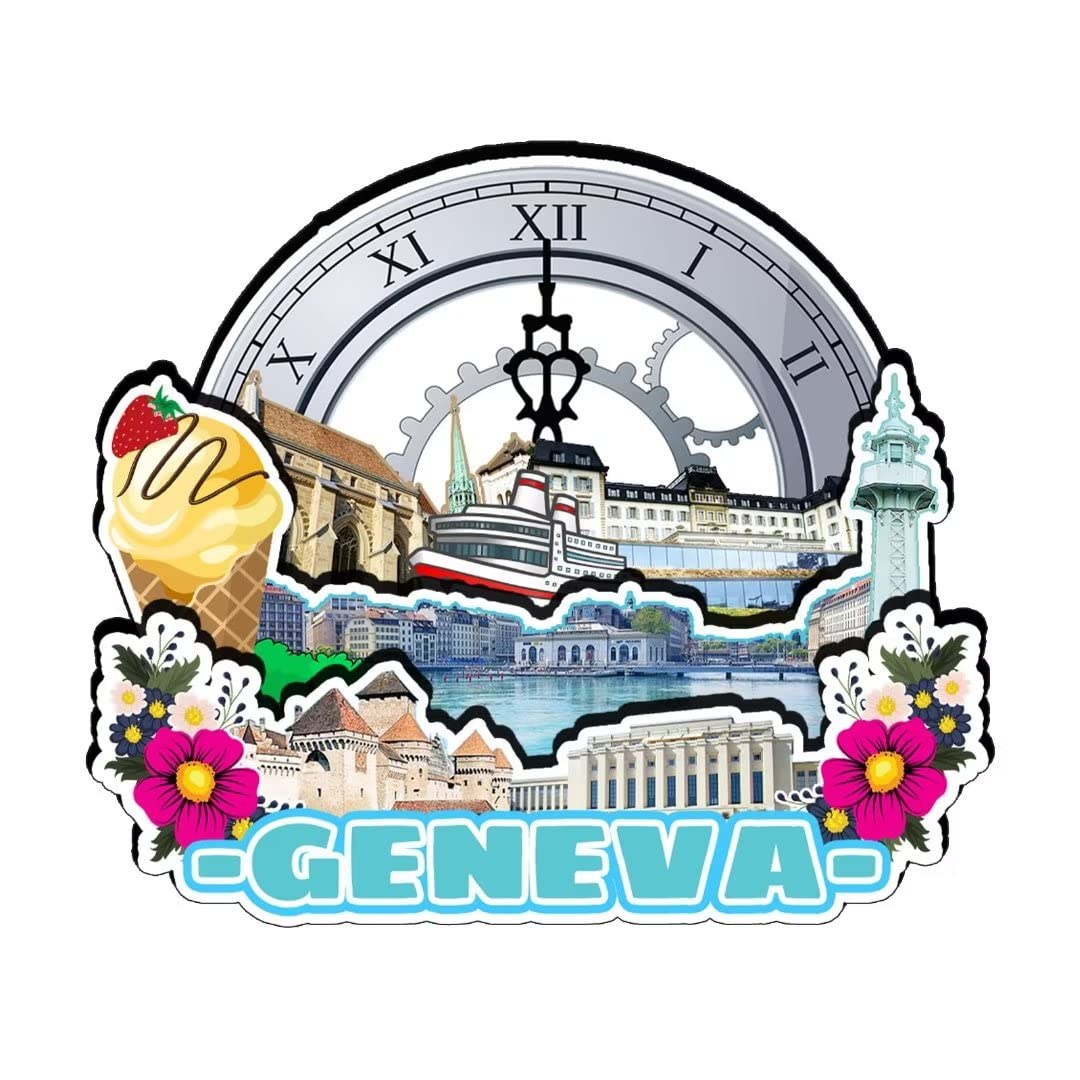 Geneva Fridge Magnet Switzerland Travel Souvenir Lake Geneva Jet D'eau Fountain