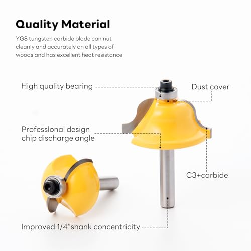 - DURABLE CONSTRUCTION: Our router bits are made of high quality alloy steel, with strong surface coating treatment, which is tough and durable. These bits blade with precisely machined YG8 tungsten carbide blade that can cut cleanly and accurately on all types of wood, and has excellent heat resistance