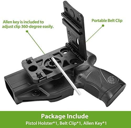 - 360 -Degrees Adjustable: Cant is 360 degrees adjustable with a Allen Key, allowing you to angle the holster perfectly for Appendix, On Hip, Behind hip or Cross draw and make a fast draw when you need your weapon.