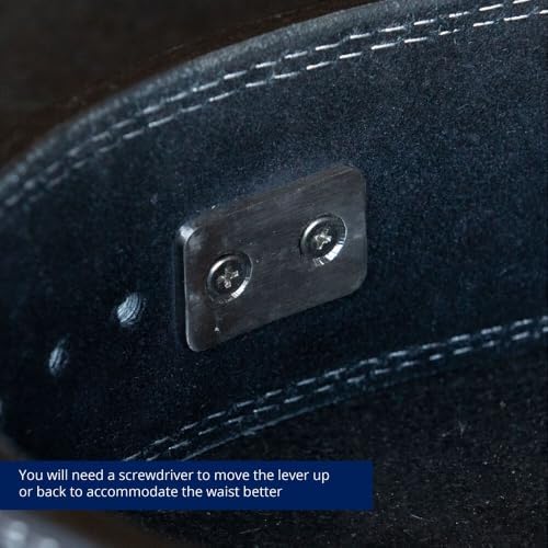 - Seven adjustable holes spaced 1-inch apart; You will need a screwdriver to move the lever up or back to accommodate the waist better