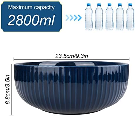 Extra Large Salad Bowl, 2800ml Ceramic Fruit Bowl, Stylish Navy Blue Round Vertical Stripe Soup Bowl, Serving Bowl for Salad, Fruit, Noodle, Soup(23.5x8.8cm, 95oz)