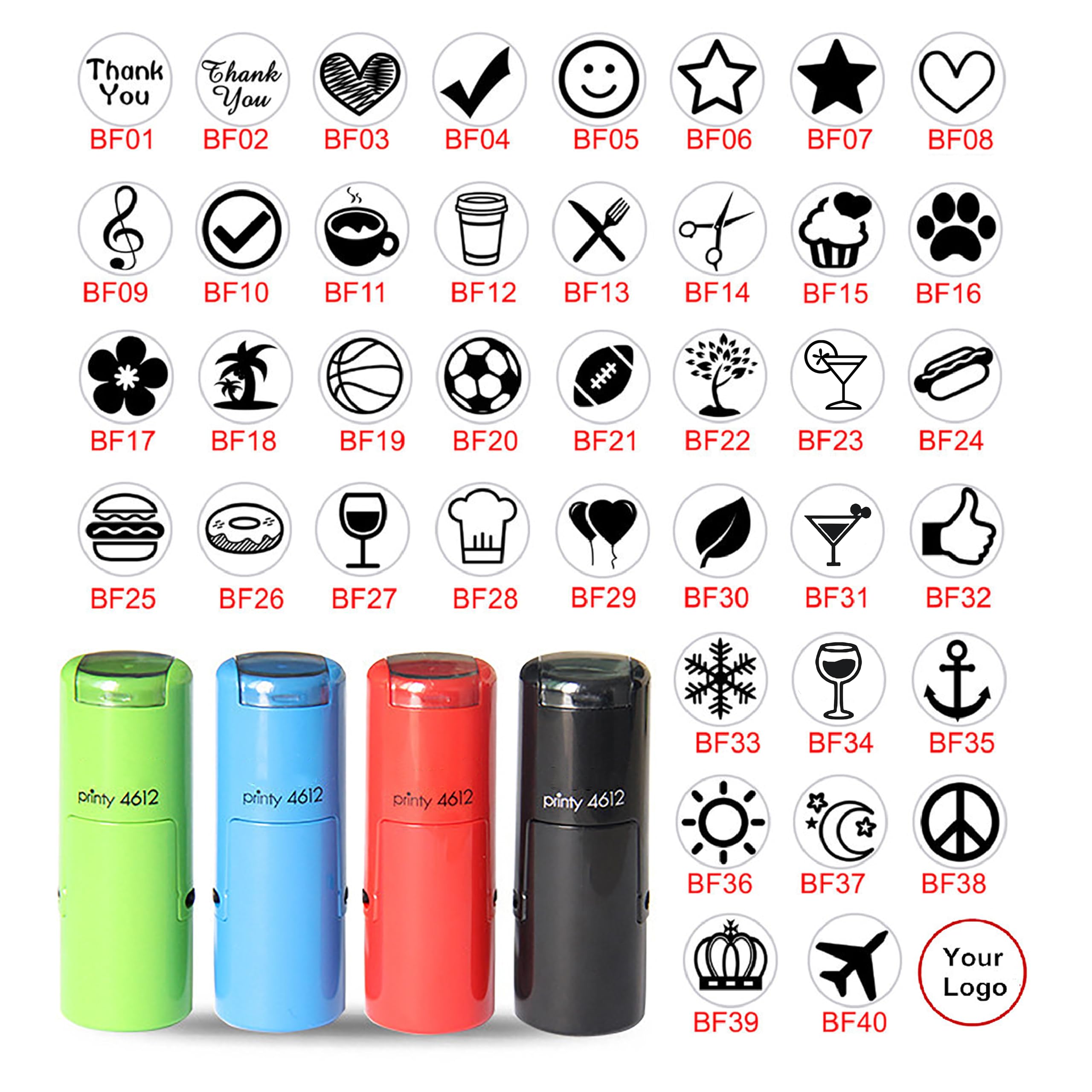 This colorful stamp is ideal as a customer loyalty card stamp or small reward stamp. With lots of personalized options, this self-inking stamp offers you a choice of 15 ink colors, 4 mount colors, 200+ images, and a custom logo/image option too!