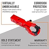 Enhanced Towing Safety: Avoid the dangers of attaching your recovery rope or tow strap to a ball hitch, which can become a hazardous projectile Robust And Secure Connection: Constructed from heavy duty steel, our UBER Hitch Receiver delivers an impressive 20T capacity, suitable for any towing challenge Rust Free Durability: This 2"x2" red hitch receiver is powder coated to prevent rust stains on your 4x4, SUV, truck, or equipment, ensuring longevity and a sleek appearance Confidence In Every Purchase: GearAmerica products are designed in the US to meet the highest standards, ensuring you have reliable recovery gear that supports your adventurous lifestyle Embrace The Open Road: Our mission is to inspire a lifestyle of freedom and respect for nature and machinery, making our recovery gear, the only gear you'll ever need for your off-road adventures