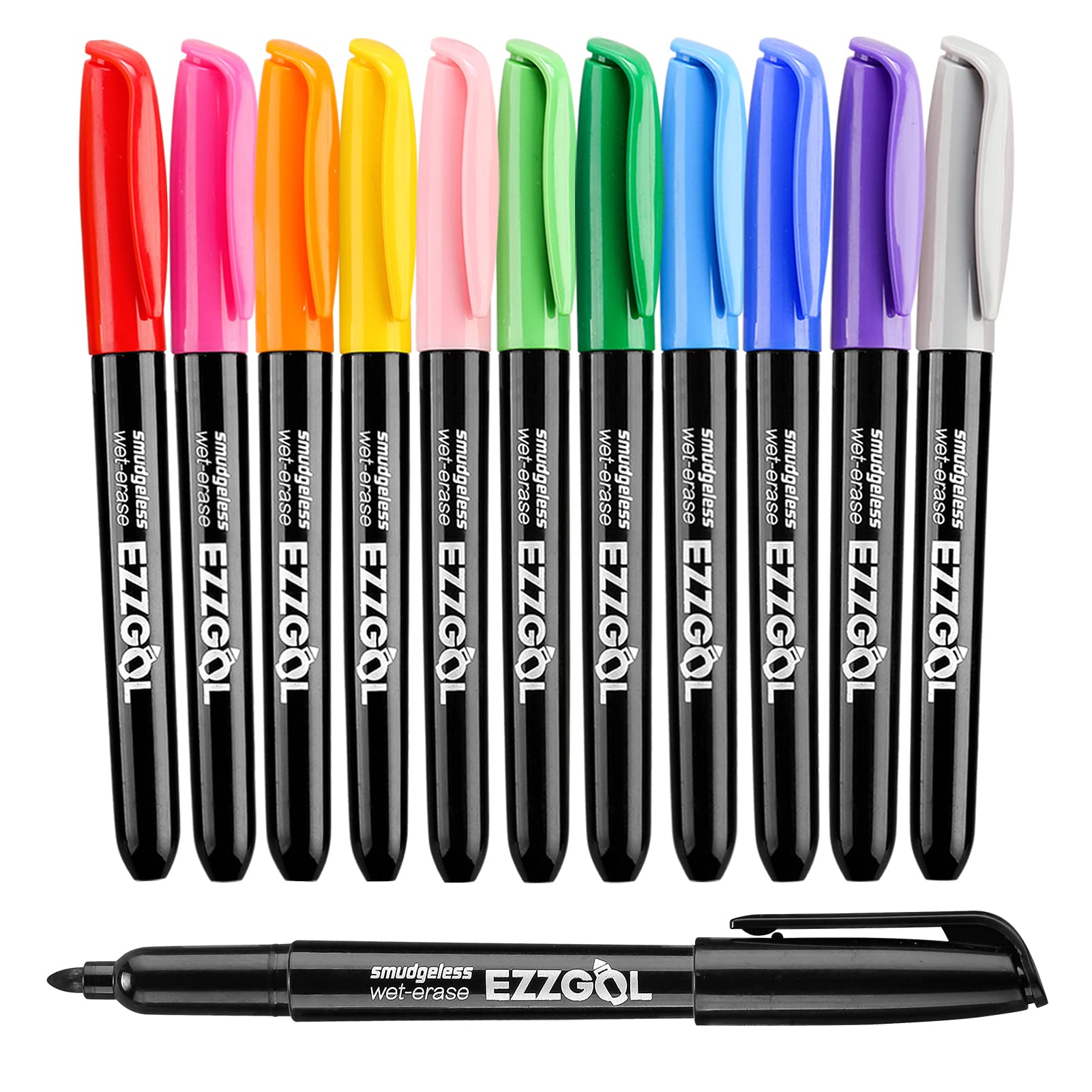 - 12 COLORS Dual tip Wet Erase Markers : This set contains 12 vibrant colors that meet you needs for commonly used colors. Flexible brush tip for shading and coloring; Ultra Fine tip for outlining and precise details. Lazgol dual tip wet erase markers allows you write notes, drawing, reminds, schedule, doodles more clear detailed and legible .Specially formulated ink provides clear, bright images.