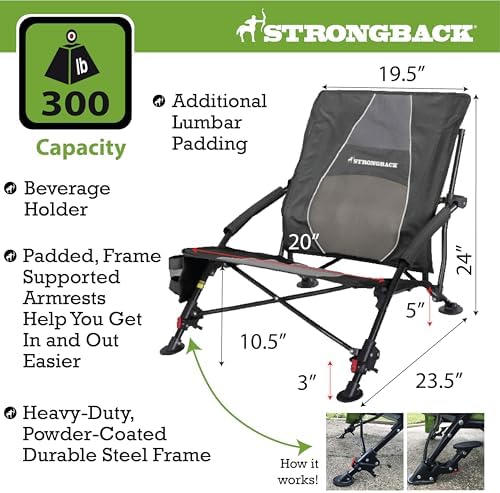 STRONGBACK Beach Chairs - Low Gravity Recliner Portable Beach Chair - with Built-in Lumbar Support, Heavy Duty Folding Beach Chairs, Great for Travel