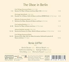 - Under the reign of Frederic II, Berlin developed into one of the most important centres of the European music scene. He brought the most important composers and musicians to his court. BR Klassik respectfully called Xenia Löffler "the queen of Baroque oboe". She presents on her new album a fine selection of oboe sonatas from the Berlin repertoire with works by two Bach sons, Schaffrath, Janitsch, and Matthes. Her fellow musicians include Michael Bosch, and Györgyi Farkas, among others. As a soloist, chamber musician, and orchestral musician, Xenia Löffler has gained an outstanding reputation as a baroque oboist over the past several years. Working with ensembles such as the Akademie für Alte Musik Berlin, where she has been active as a member and soloist since 2001, she has toured throughout the world and has performed at some of the most important music festivals and concert halls.