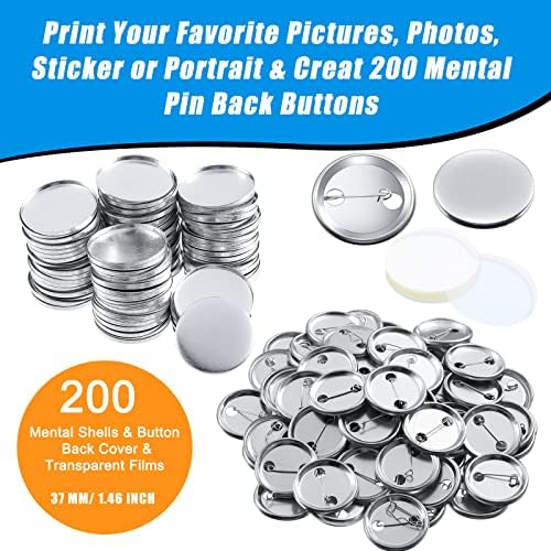 - Button set: receive 200 sets of round button parts supplies, including 200 piece of metal shell, 200 piece of metal back cover with pin and 200 piece of transparent film in each set, sufficient quantity to make create personalized buttons for yourself, friends, classmates, colleagues or family members