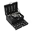- CARACTERÍSTICAS Y TAMANHO - 24*17*11CM gran capacidad. La primera capa: 8 ganchos, quince ranuras para anillos, 10 pares de ganchos para pendientes, 18 pares de agujeros para pendientes, 9 pequeñas rejillas, 1 rejilla mediana. La segunda capa: seis brazaletes, compartimento para relojes. La tercera capa: tipo cajón, 18 compartimentos pequeños, 1 compartimento grande