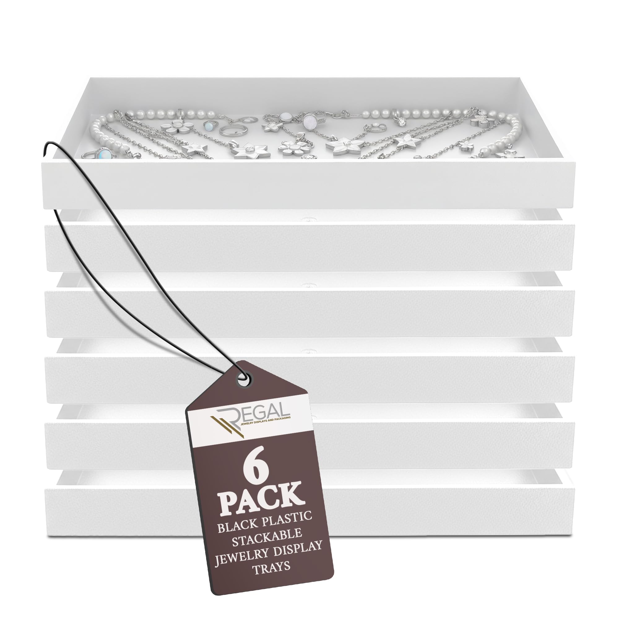 - S𝗲𝘁 𝗼𝗳 6 S𝘁a𝗰𝗸a𝗯𝗹𝗲 D𝗶𝘀𝗽𝗹a𝘆 T𝗿a𝘆𝘀: Organize your entire collection with our set of six stackable jewelry trays. The space-saving design is perfect for any jewelry drawer organizer, keeping your dresser top clutter-free and your valuables protected