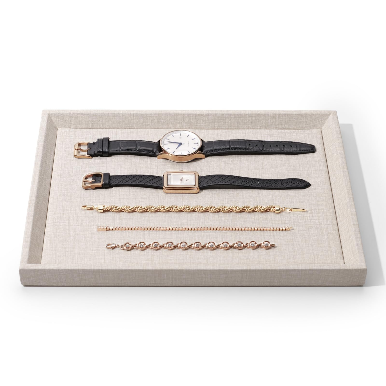 - F𝗶𝘁𝘀 S𝘁a𝗻𝗱a𝗿𝗱 I𝗻𝘀𝗲𝗿𝘁𝘀 & D𝗶𝘃𝗶𝗱𝗲𝗿𝘀: These ultra-lightweight trays are perfectly sized at 14.75 x 8.25" to accommodate all standard jewelry drawer organizer inserts (sold separately). Easily customize compartments for rings, necklaces, and bracelets