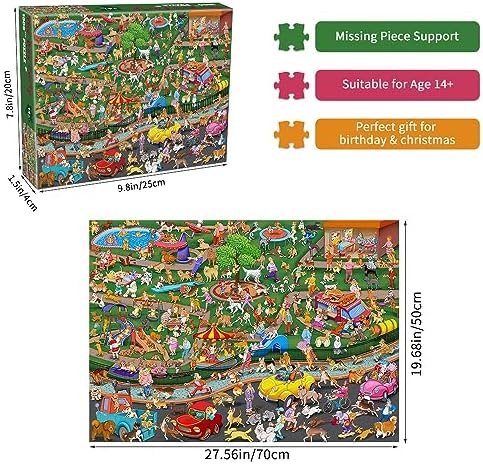 - 【Jigsaw Puzzles Size】This jigsaw puzzles contains 1000 pieces of puzzle and a poster for reference. Finished size: 27.6" x 19.7"/70*50cm. For those who want to try challenging puzzles, this puzzles for adults is perfect. Dogs are good friends of mankind, this jigsaw puzzle depicts a vivid scene of people playing joyfully with dogs