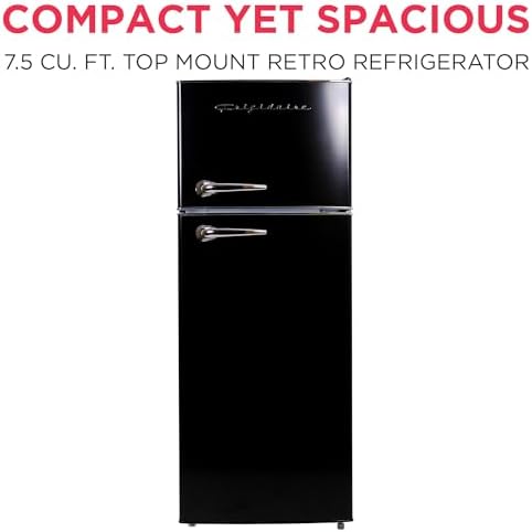 Frigidaire EFR786 Retro Apartment Size Refrigerator with Top Freezer - 2 Door Fridge with 7.5 Cu Ft of Storage Capacity, Adjustable Spill-Proof Shelves, Door & Crisper Bins, Black