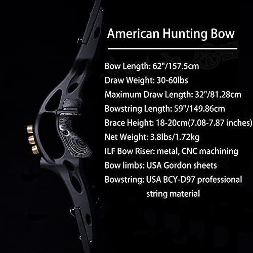 ZSHJGJR 62" ILF Recurve Bow Archery American Hunting Bow with Gordon Limbs 30-60lbs for Adult Right Handed Archery Set (40lbs, Black)