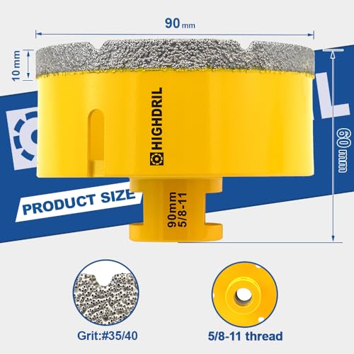 HIGHDRIL Diamond Core Drill Bit - 3-1/2"(90mm) with 5/8-11 Thread Dry Drilling for Porcelain Tile Ceramic Granite Marble Stone Masonry Brick