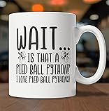 - This cute 11oz pied ball python mug features a pied ball python and says, "Wait…Is that a pied ball python? I love pied ball pythons!" This design was created exclusively for Eternally Gifted. We use the highest quality ceramic and our designs are created and printed in the United States.