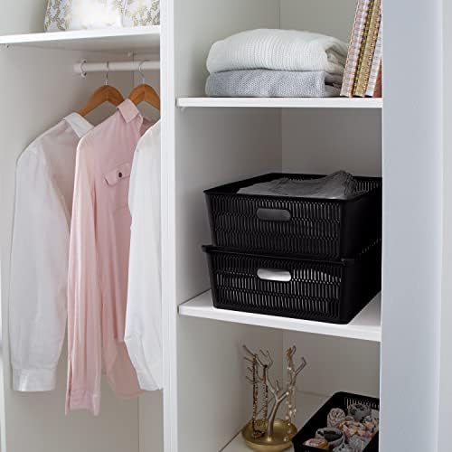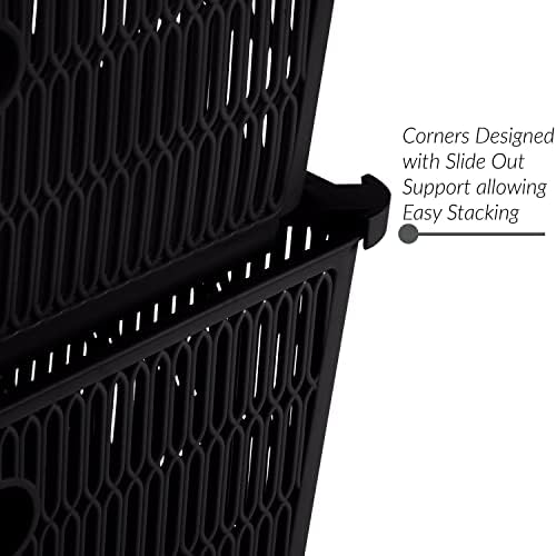 Simplify 2Pk Shallow Slide 2 Stack It Tote Basket | Storage & Organization | Open Bins with Stackable Capability | Bathroom | Crafts | Pantry | Playroom | Office | Black