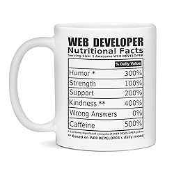 - Funny personalized Web Developer Coffee Mug would make a great gift for birthday gifts for Web Developer funny mug for Web Developer him or her, adults, aunt, boys, brother, children, dad, daughter, father, female, girls, grandfather, grandma, grandmother, grandpa, husband, kids, male, man, mom, mother, parents, seniors, sister, son, student, teacher, teens, uncle, wife, woman, Mother’s Day, Father’s Day, Christmas, and retirement. Whether you're drinking your morning coffee or tea for breakfast or something in between then this ceramic mug is for you! It's a sturdy mug and has a vivid print that will not scratch or peel over time, and it's dishwasher and microwave safe too. This mug will make a perfect Christmas gift for Web Developer and would make a great choice for a special occasion. Looking for more information about the mug? Design: Web Developer Nutritional Facts Label - Web Developer Mug Funny - Design is printed on both sides with vivid colors - Printed in the USA - High quality ceramic mug - Dishwasher and microwave safe - Great for your favorite hot or cold drinks - Comfortable, rounded handle