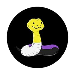Snake nonbinary pride. Are you looking for a nonbinary design for a proud nonbinary pride person celebrating Nonbinary Pride Day? Then grab this Snake nonbinary pride design which shows a snake in nonbinary flag colors. PopGrip with swappable top; switch out your PopTop for another design or remove it completely for wireless charging capabilities. (Not compatible with Apple MagSafe wireless charger or MagSafe wallet.) Expandable stand to watch videos, take group photos, FaceTime, and Skype handsfree. Advanced adhesive allows you to remove and reposition on most devices and cases. Note: Will not stick to some silicone, waterproof, or highly textured cases. Works best with smooth, hard plastic cases. Will adhere to iPhone 11, but not to the iPhone 11 Pro nor the iPhone 11 ProMax without a suitable case.