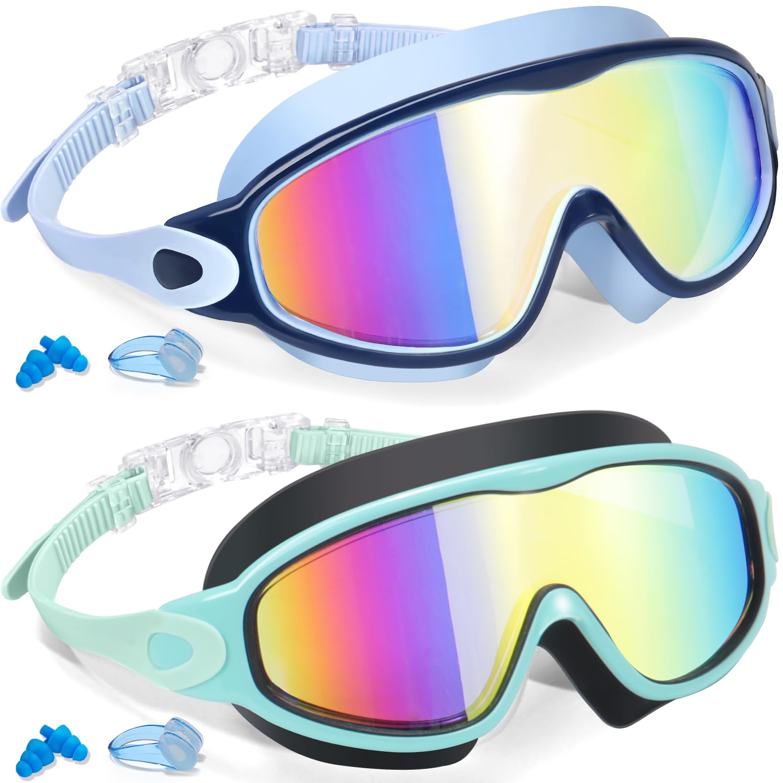 Keary 2 Pack Swim goggles for Adult Youth with Soft Silicone Gasket, Anti-fog UV Protection No Leak Clear Vision Pool Goggles