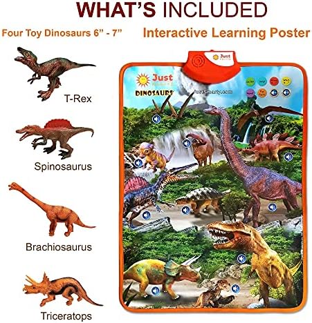 - Dinosaur learning poster includes fun facts about dinosaurs, two games with four realistic dinosaur figures