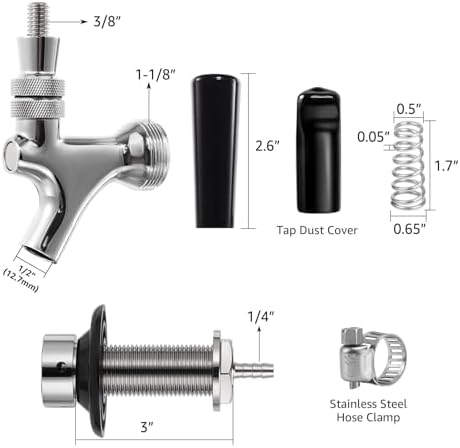 3" Shank Draft Faucet Kit - Stainless Steel Core, Chrome Plated, Leak-Proof Tap with 1/4" Barb for Beer Line Nipple Keg Tap Shank for Homebrew Kegerator Tap