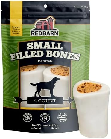Redbarn Pet Products Small Filled Dog Bones, Cheese & Bacon Flavor - Long Lasting Stuffed Femur Chew Treat Made in USA - 4 Count - Packaging May Vary