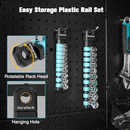 - CONVENIENT TO USE: These sockets are storage on the firm plastic rail with 360 degrees rotating head and hanging hole for organization and storage. Just press the blue plastic clip and pull out the socket to use.