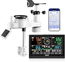 - 【C𝗼𝗺𝗽𝗿𝗲𝗵𝗲𝗻𝘀𝗶𝘃𝗲 W𝗲a𝘁𝗵𝗲𝗿 M𝗼𝗻𝗶𝘁𝗼𝗿𝗶𝗻𝗴】The HD display clearly presents all critical weather metrics at a glance, including real-time temperature (indoor: 0°C-60°C; outdoor: -40°C-60°C) and humidity(10%-99%), barometric pressure(300-1100 hPa), wind speed/direction indicators, rainfall measurements, dew point, feels like, moon phase, calendar and so on