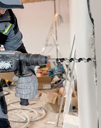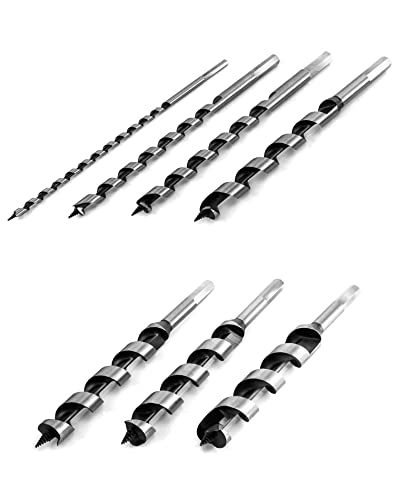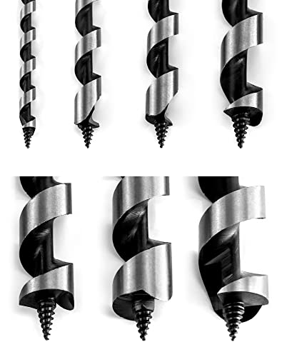 QWORK Auger Drill Bit Set, 7 Piece Set 9" Auger Bit Set Hardened Alloy Steel Ship Auger Bit Creates Deep Clean Hole Precise Drilling for Wood Drilling