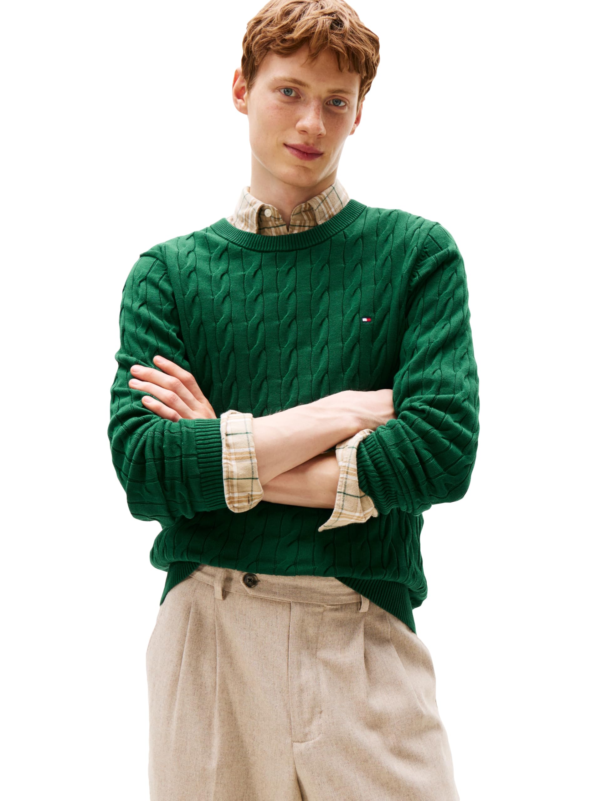 Tommy Hilfiger Womens Lightweight Scoop Neck Cable Knit Sweater (Small, Light Gray)