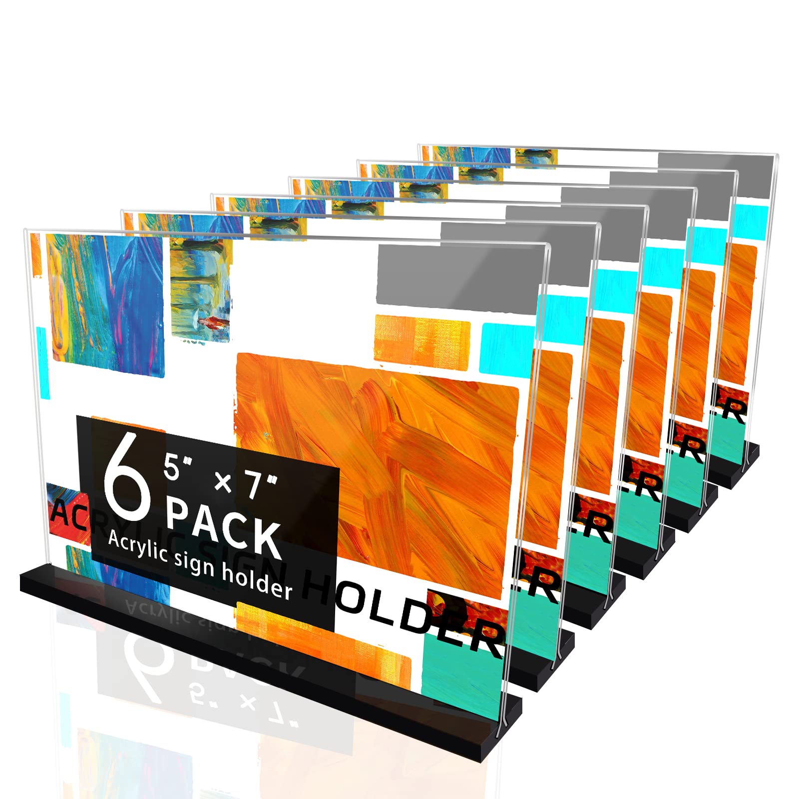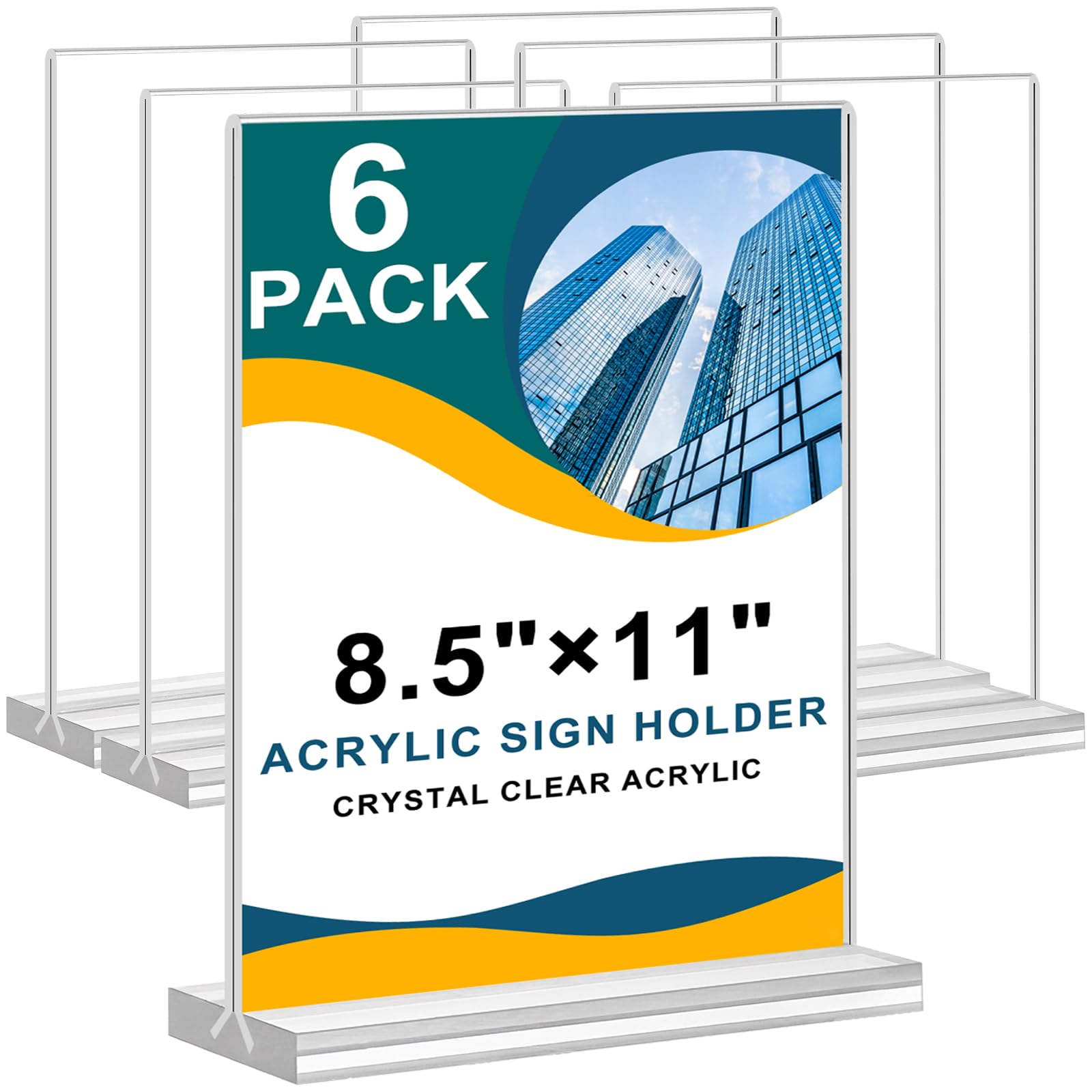 Acrylic Sign Holder 8.5 x 11 Inches Horizontal 6 Pack,Clear Plastic Sign Holder,Double Sided, Bottom Load,T Shape Table Top Display Stand,Acrylic Frame for Homes Restaurants Offices Shops -Landscape