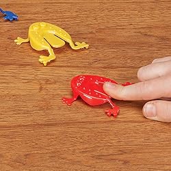 Try your hand at flicking the colorful frogs in the bucket A fun, nostalgic game requiring no batteries or apps Set includes 12 frogs in red, blue, yellow and green, plus 1 bright yellow bucket (3 1/4" H x 4 1/2" dia.) Polystyrene and polypropylene Ages 3 and up: SMALL PARTS, Not for <3 yrs.