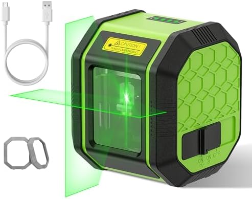 - 【100Ft. Bright Green Cross Line Laser Level】 Huepar FC011G laser level adopts advanced Diode Technology, emits brighter green beam with a 110° horizontal line and a 110° vertical line to assist your leveling jobs, providing high visibility up to 100Ft. with an accuracy of ± 1/9 inch at 33 feet(±3mm/10m). This green cross line laser level is an ideal tool for installing doors, windows, furniture carpentry, hanging wallpaper & photos, etc.
