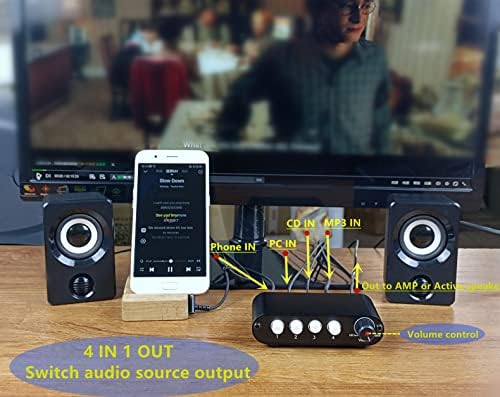- 4 in 1 out: Support up to 4 audio source inputs and select 1 audio source output