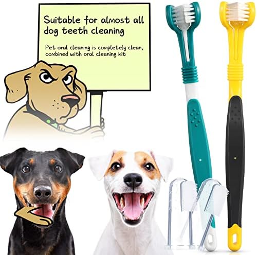 7 Pcs Dog Teeth Cleaning Kit Includes Tooth Scaler and Tarter Remover Scraper 3 Head Pet Toothbrush and Dog Finger Toothbrush Plaque Remover Tools(Classic Style,Black Yellow and Dark Green)