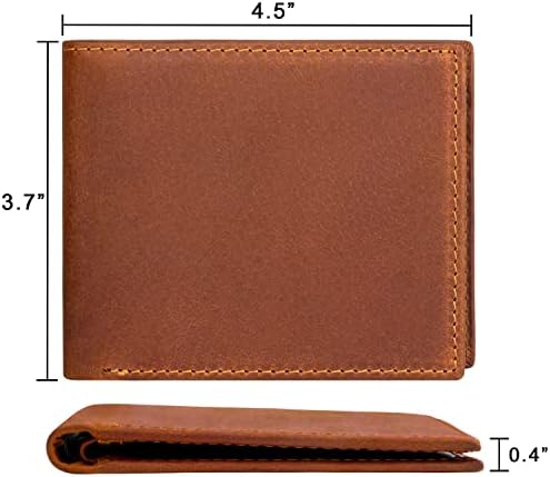 - MENS LEATHER WALLET-Using the top quality leather, our wallet has the effect of vintage and will not lose its appearance over time. Leather wallet with durable and soft surface gives you a perfect touch and feeling. Our RFID blocking wallet can prevent your personal and bank cards information from leaking.