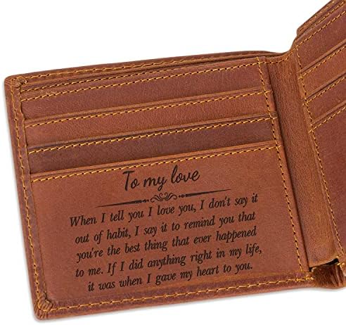 - ENGRAVED WALLET with MOST CONSIDERATE MESSAGE -Gifts idea feature the words "To my love... If I did anything right in my life, it was when I gave my heart to you..." on the wallet to show your love to your husband/boyfriend/fiance. Advanced laser engraving technology makes love reminder eternal!