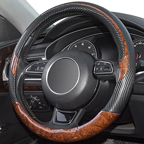 Funda de volante Xizopucy con vetas de madera negra, de piel de microfibra universal, adecuada para 14 1/2-15 pulgadas, cómoda, antideslizante, buena transpirable e inodora